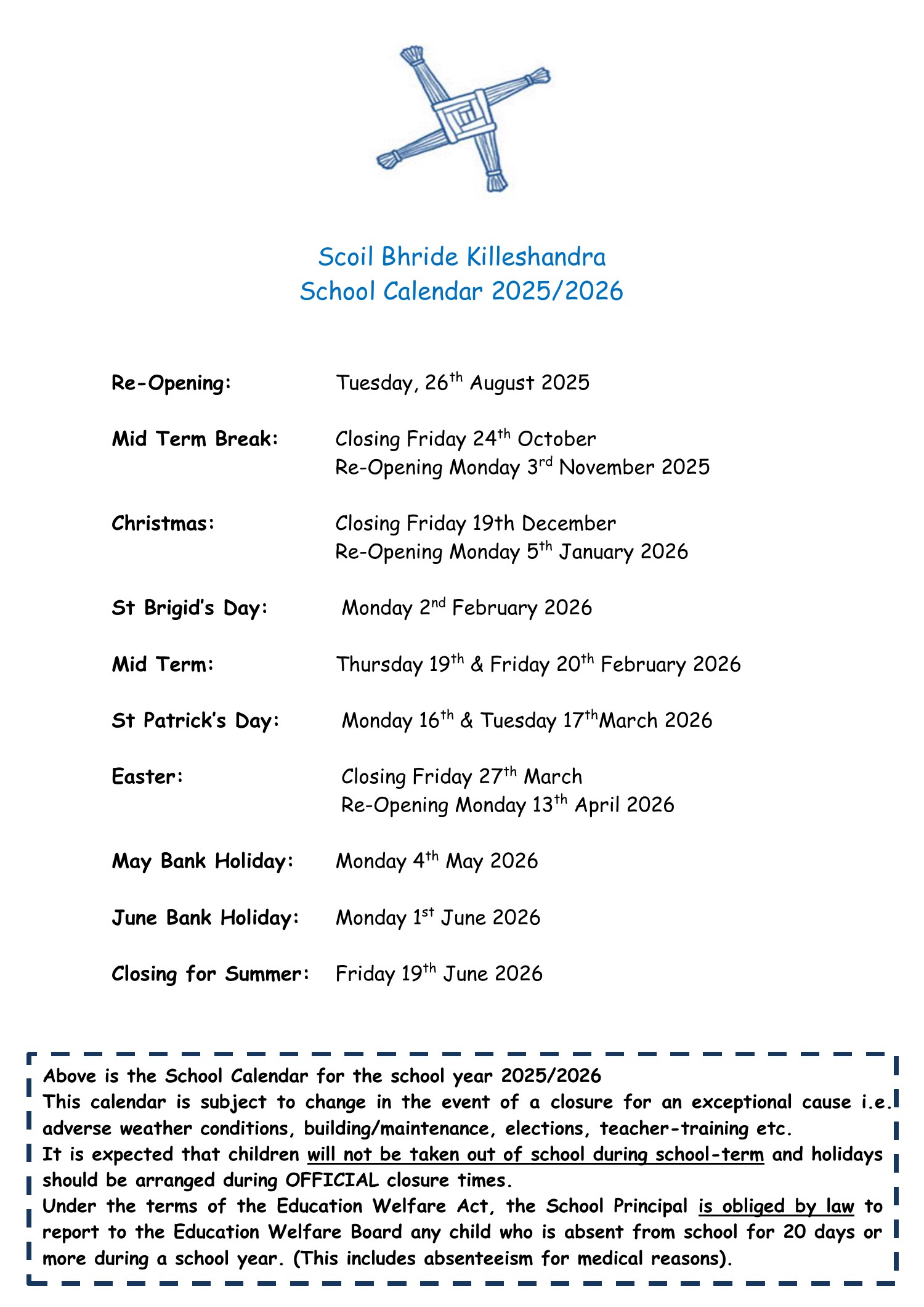 Fri 27 School closes for Easter 12pm (12pm) |